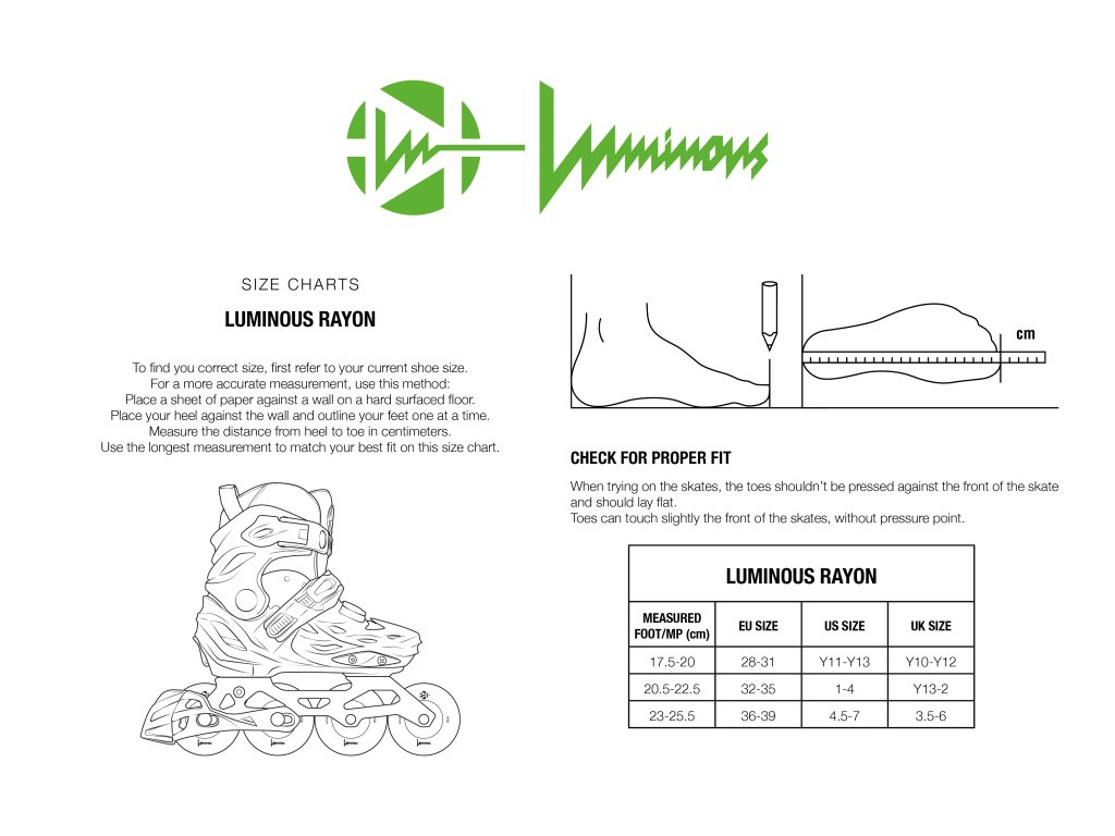 LUMINOUS RAYON WHITE jsou juniorské brusle, které spojují styl, výkon a zábavu. Díky nastavitelné velikosti ve 4 krocích se pohodlně a bezpečně přizpůsobí rostoucí noze. Brusle jsou osazeny ložisky ABEC 7, která zajišťují plynulý odval a dlouhodobě spolehlivý výkon.